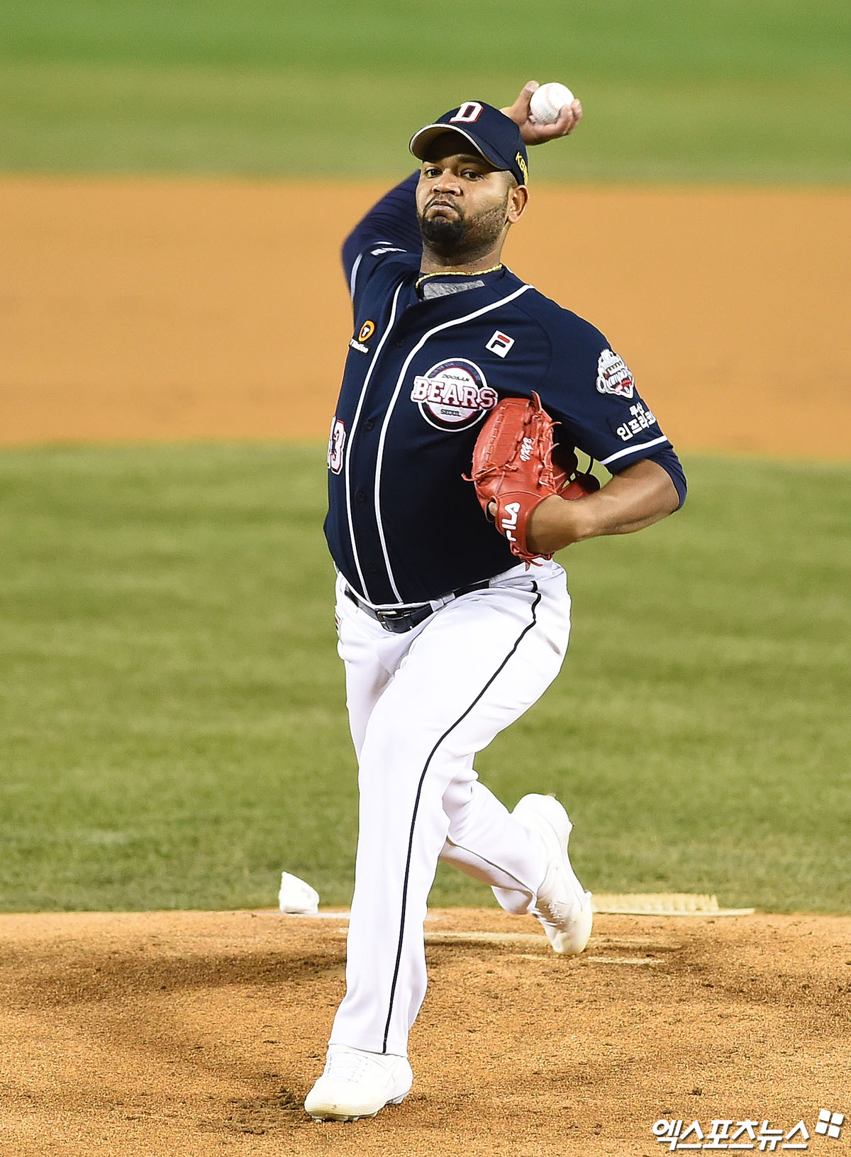 [엑스포츠뉴스 잠실, 박지영 기자] 5일 오후 서울 송파구 잠실야구장에서 열린 '2020 신한은행 SOL KBO 포스트시즌' 두산 베어스와 LG 트윈스의 준플레이오프 2차전 경기, 1회말 두산 선발투수 알칸타라가 역투하고 있다.