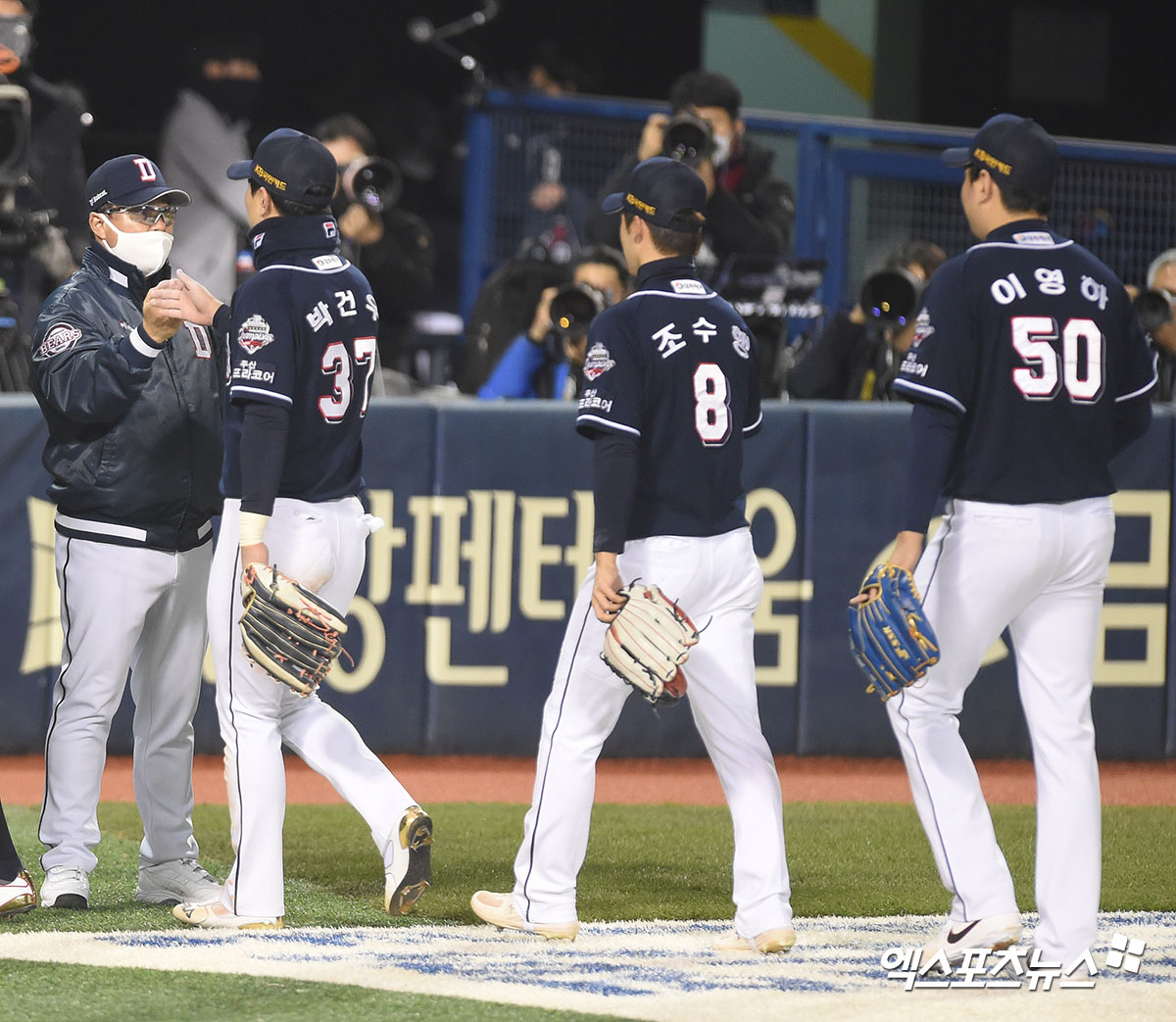 [엑스포츠뉴스 잠실, 김한준 기자] 5일 오후 서울 송파구 잠실야구장에서 열린 ‘2020 신한은행 SOL 포스트시즌’ 두산 베어스와 LG 트윈스의 준플레이오프 2차전 경기, 두산 베어스와 LG 트윈스의 준플레이오프 2차전 경기, 두산이 타격전 끝에 LG에게 9:7의 스코어로 승리하며 플레이오프 진출을 확정했다.