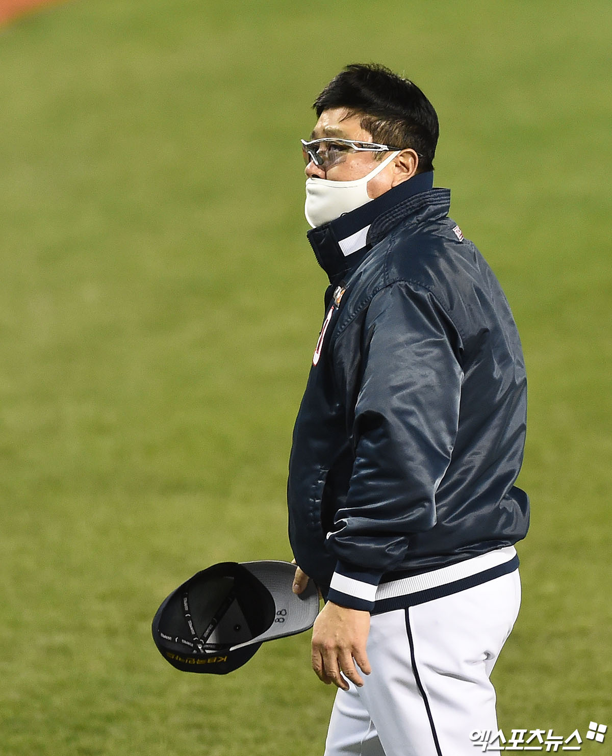 경기 종료 후 두산 김태형 감독이 그라운드를 빠져나가고 있다.