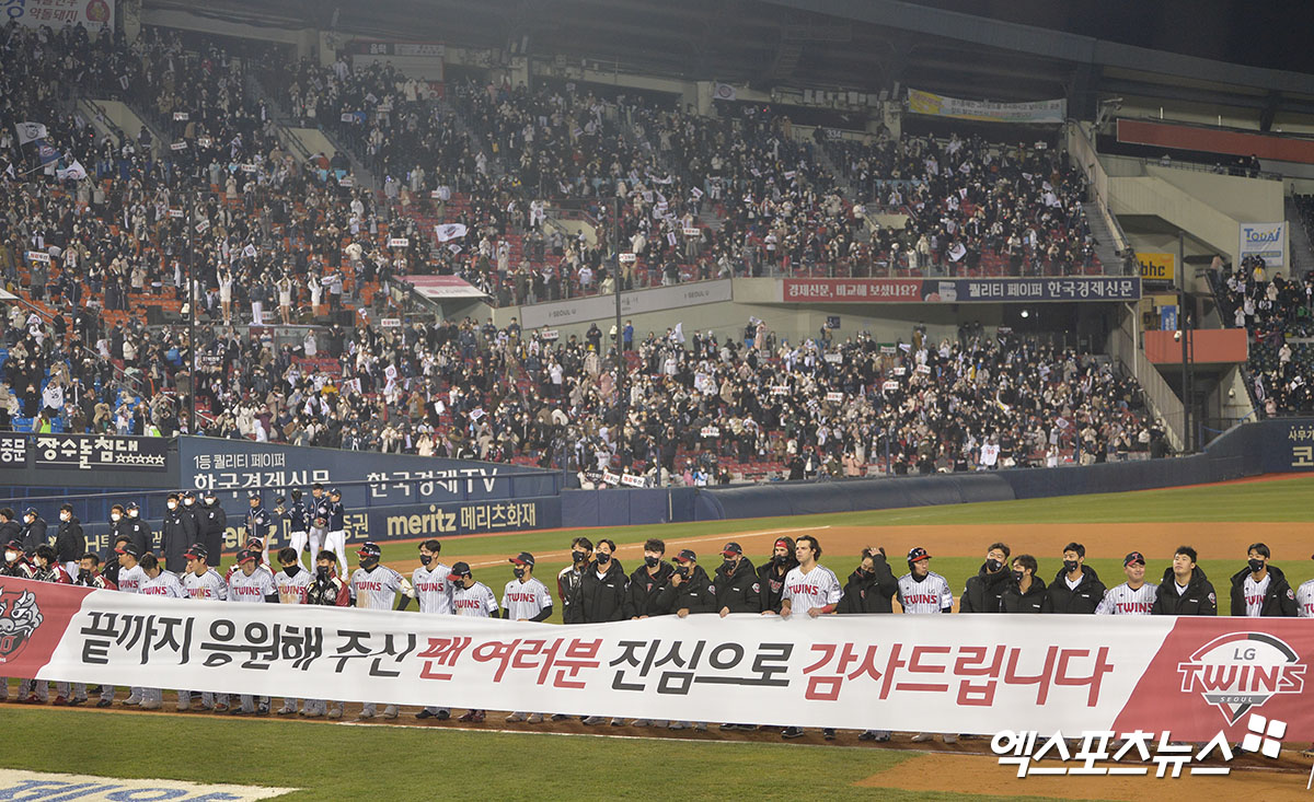 경기종료 후 LG 선수단이 관중석을 향해 인사를 하고 있다.
