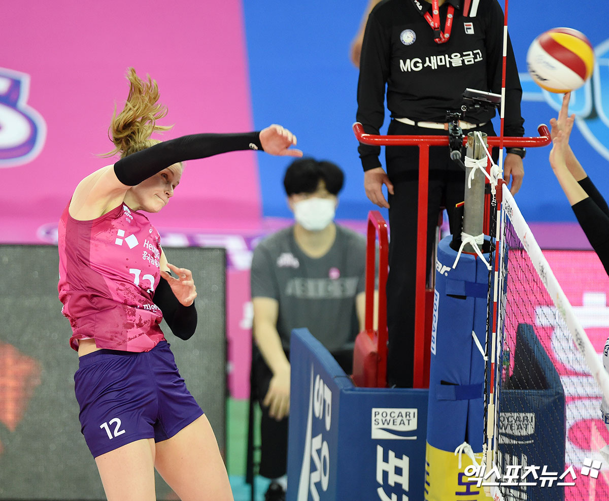 [엑스포츠뉴스 인천, 김한준 기자] 7일 오후 인천 계양체육관에서 열린 ‘2020-2021 도드람 V리그’ 흥국생명과 기업은행의 경기, 흥국생명 루시아가 공격을 시도하고 있다.
