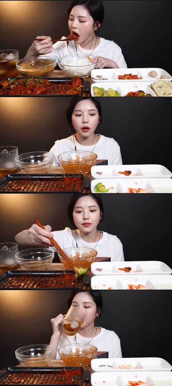 이어 "첫(?)영상으로 어떤 음식을 먹을까 생각하다가 많은 분들이 좋아해 주셨던 집밥으로 가지고 왔어요! 매콤달콤한 제육볶음에 된장시래기국, 반찬은 호박볶음, 오이무침, 계란찜, 들깨고사리무침, 배추김치, 메추리알 장조림입니다. 오늘도 보러 와주셔서 감사합니다! 행복한 하루 되세요"라고 전했다.