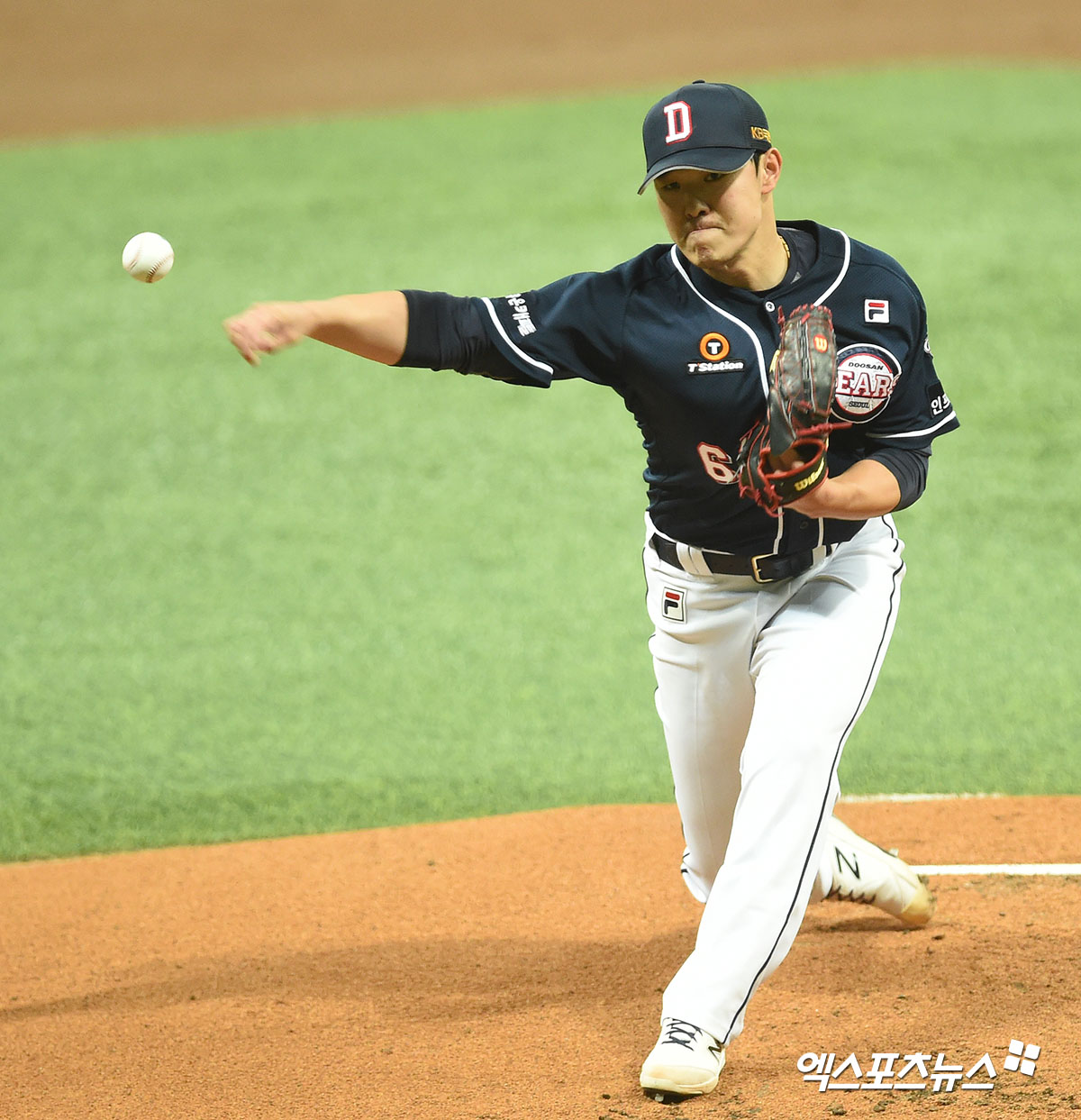 [엑스포츠뉴스 고척, 김한준 기자] 10일 오후 서울 구로구 고척스카이돔에서 열린 ‘2020 신한은행 SOL 포스트시즌’ 두산 베어스와 KT 위즈의 플레이오프 2차전 경기, 1회말 두산 선발투수 최원준이 공을 힘차게 던지고 있다.