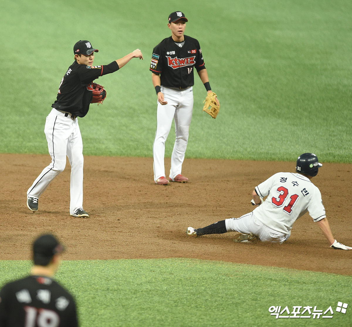 KT '더블플레이로 실점 위기 탈출'[포토]