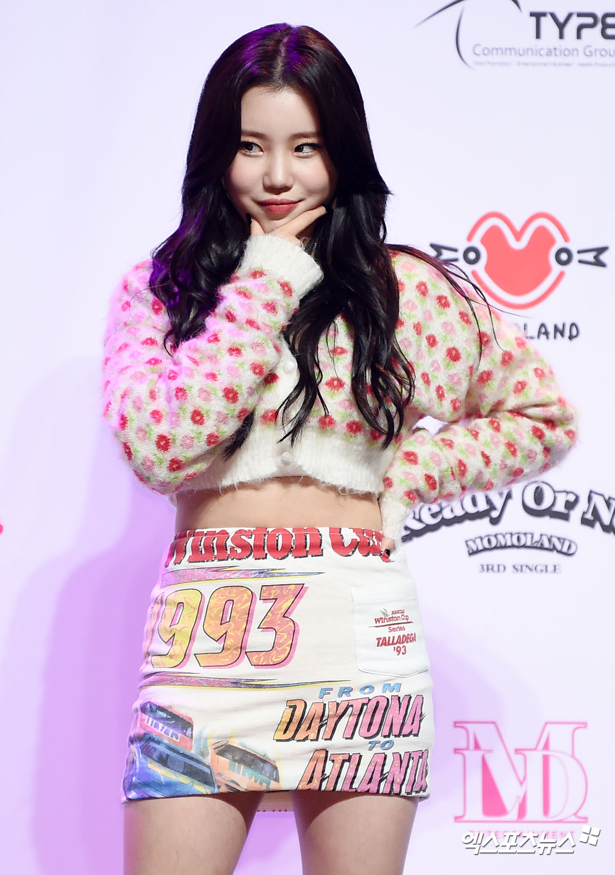 이날 쇼케이스에 참석한 모모랜드 주이가 포토타임을 갖고 있다.