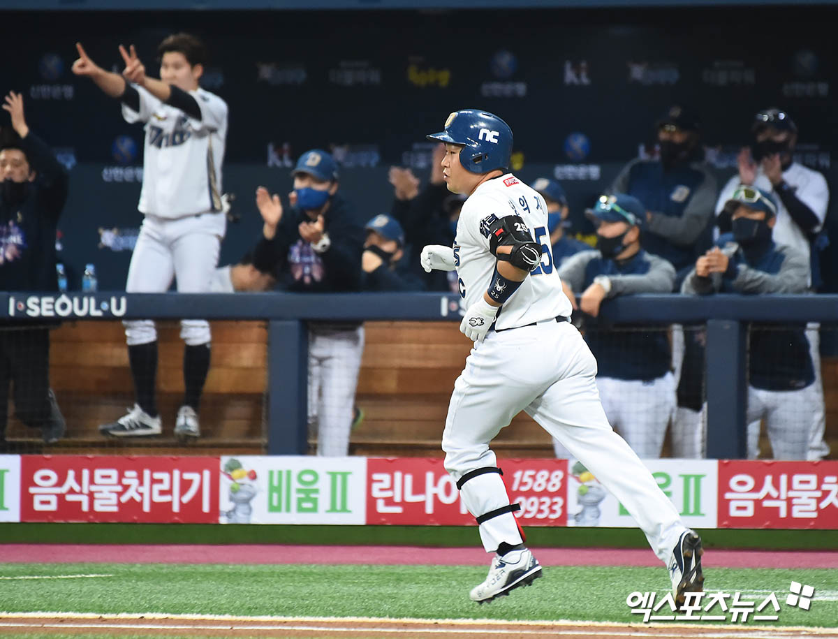 ​​[엑스포츠뉴스 고척, 윤다희 기자] 17일 오후 서울 구로구 고척스카이돔에서 열린 ‘2020 신한은행 SOL KBO 리그’ 두산 베어스와 NC 다이노스의 한국시리즈 1차전 경기, 1회말 1사 1루 NC 양의지가 좌전안타를 날리고 있다.