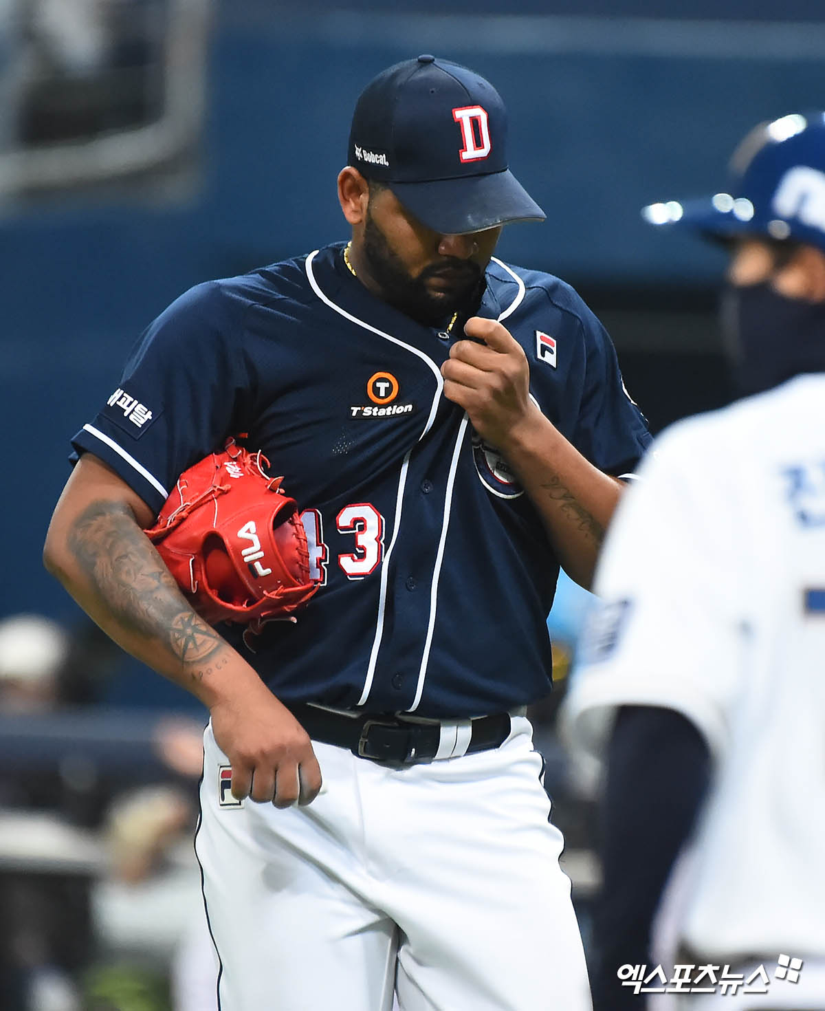 [엑스포츠뉴스 고척, 윤다희 기자] 17일 오후 서울 구로구 고척스카이돔에서 열린 ‘2020 신한은행 SOL KBO 리그’ 두산 베어스와 NC 다이노스의 한국시리즈 1차전 경기, 5회말 종료 후 두산 알칸타라가 더그아웃으로 향하고 있다.
