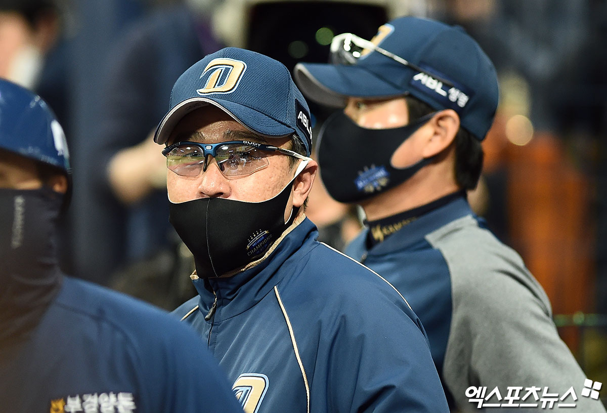 [엑스포츠뉴스 고척, 박지영 기자] 20일 오후 서울 구로구 고척스카이돔에서 열린 '2020 신한은행 SOL KBO 포스트시즌' NC 다이노스와 두산 베어스의 3차전 경기, NC 이동욱 감독이 더그아웃에서 선수단을 바라보고 있다.