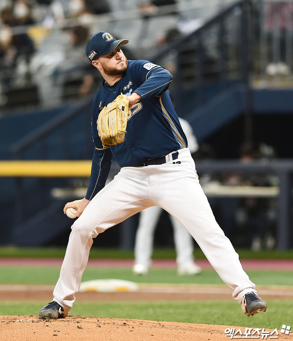 [엑스포츠뉴스 고척, 박지영 기자] 20일 오후 서울 구로구 고척스카이돔에서 열린 '2020 신한은행 SOL KBO 포스트시즌' NC 다이노스와 두산 베어스의 3차전 경기, 1회말 NC 선발투수 라이트가 역투하고 있다.