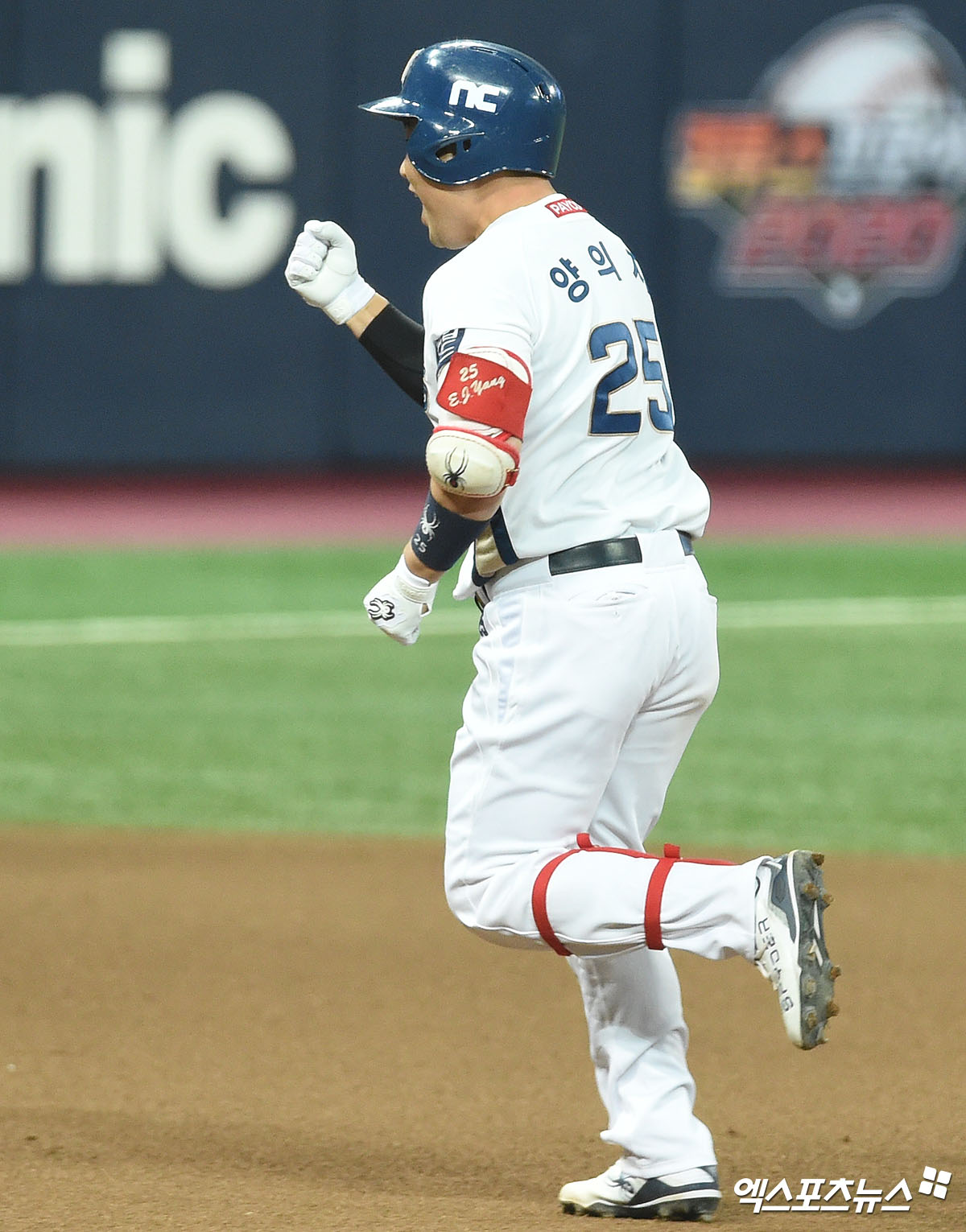 [엑스포츠뉴스 고척, 김한준 기자] 23일 오후 서울 구로구 고척스카이돔에서 열린 ‘2020 신한은행 SOL 포스트시즌’ 두산 베어스와 NC 다이노스의 한국시리즈 5차전 경기, 6회말 1사 1루 NC 양의지가 투런 홈런을 날린 후 그라운드를 돌고 있다.
