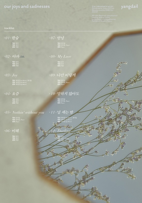 지난 15일, 브랜뉴뮤직은 공식 SNS 채널들을 통해 양다일의 두 번째 정규앨범 ‘our joys and sadnesses’의 트랙리스트 이미지를 공개했다.