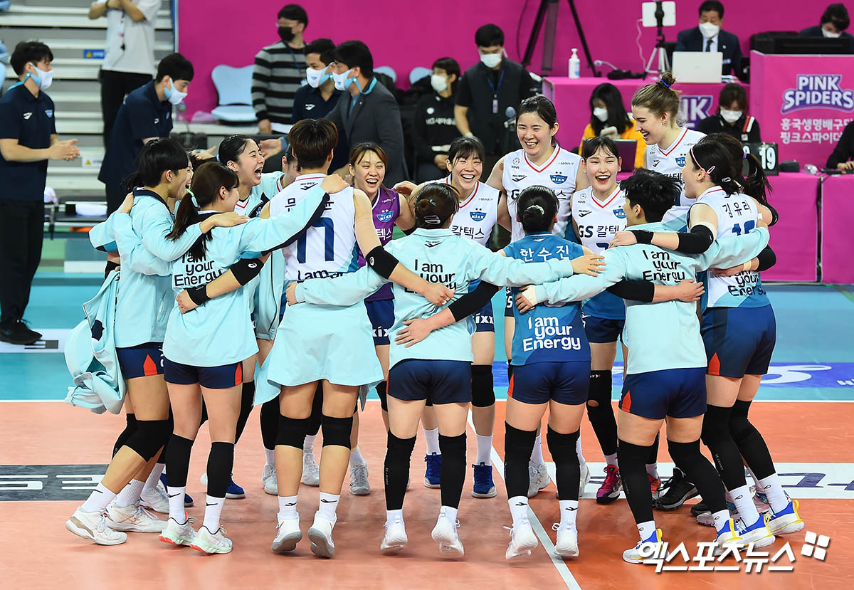 GS칼텍스 선수들이 승리의 기쁨을 나누고 있다.