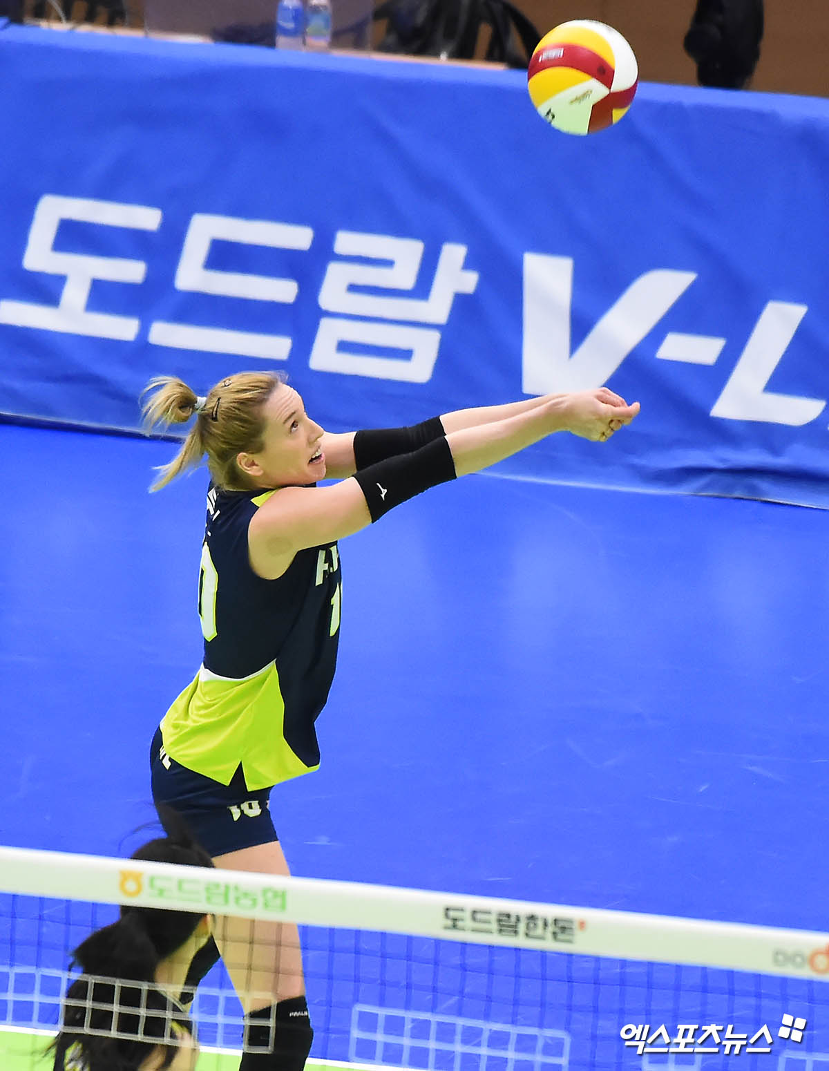 [엑스포츠뉴스 수원, 윤다희 기자] 9일 오후 수원실내체육관에서 열린 ‘2020-2021 도드람 V리그’ 여자부 현대건설과 GS칼텍스의 경기, 현대건설 루소가 리시브하고 있다.