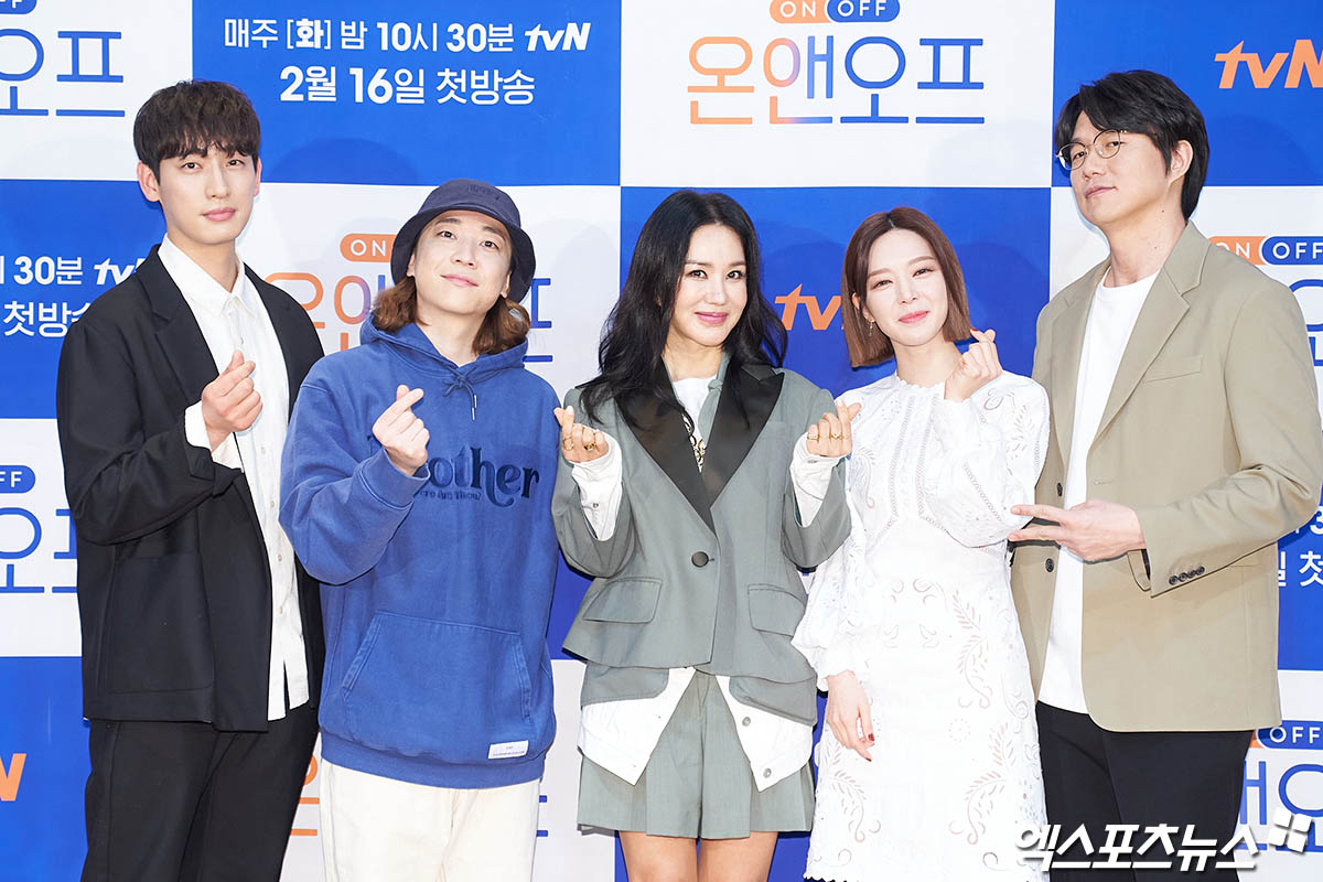 [엑스포츠뉴스 박지영 기자] 15일 오전 온라인 생중계로 진행된 tvN 에능 '온앤오프' 제작발표회에 참석한 윤박, 넉살, 엄정화, 초아, 성시경이 포토타임을 갖고 있다.