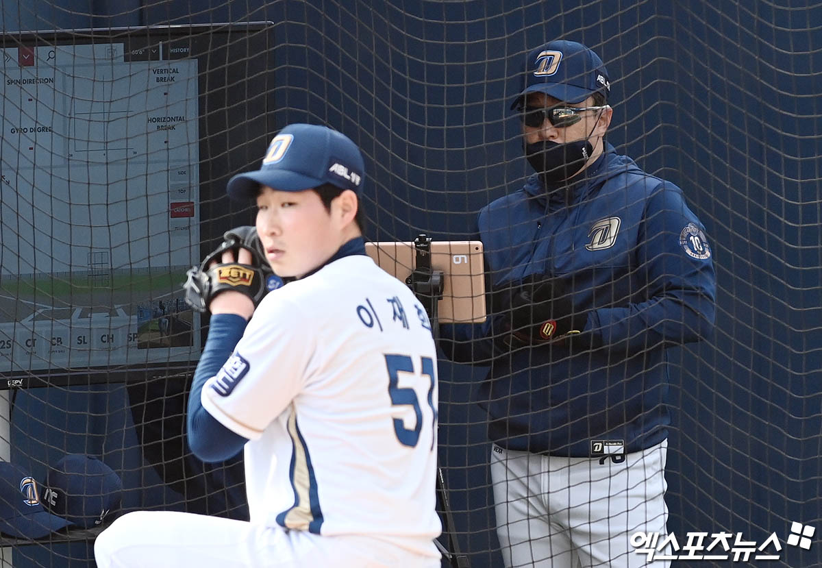 '선발 경쟁' NC 이재학-김영규, 불펜 피칭 직캠[엑's 스케치]