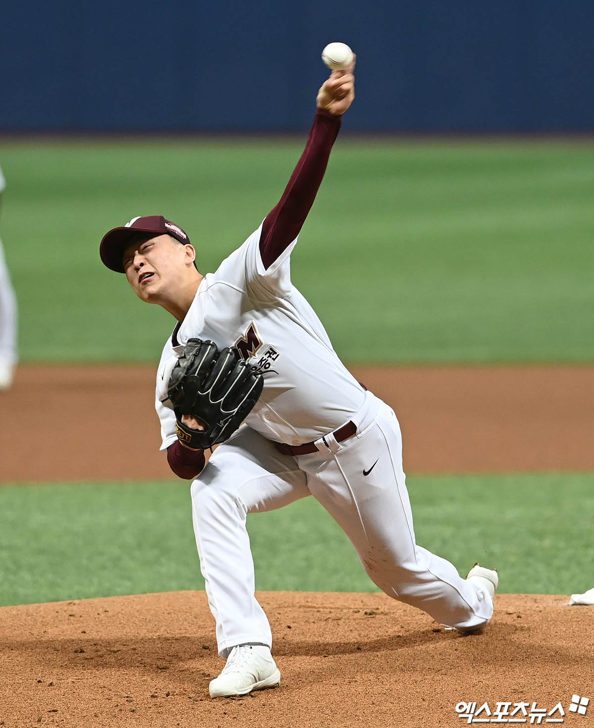 [엑스포츠뉴스 고척, 박지영 기자] 2일 오전 서울 구로구 고척스카이돔에서 진행된 키움 히어로즈 자체 청백전 경기, 이승호가 역투하고 있다.