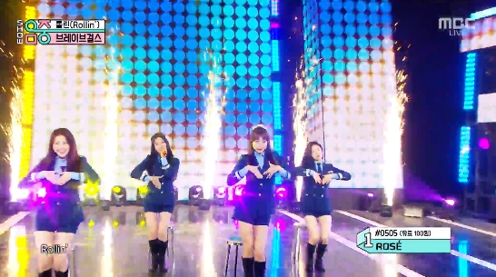 이날 브레이브걸스는 공군 제복을 입고 등장했다. 제복과 베레모를 쓴 브레이브걸스는 댄서들과 함께 '롤린' 퍼포먼스를 선보이며 시선을 사로잡았다.