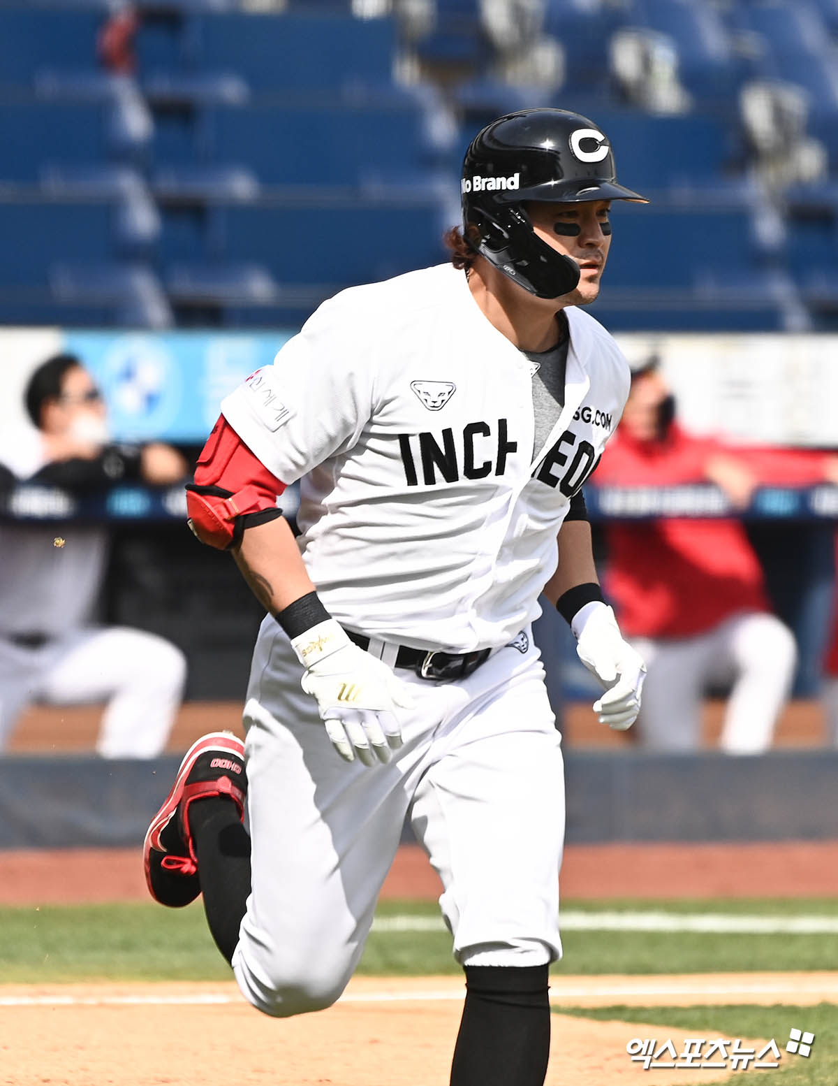 [엑스포츠뉴스 창원, 윤다희 기자] 21일 오후 경상남도 창원NC파크에서 열린 SSG 랜더스와 NC 다이노스의 시범경기, 5회초 1사 SSG 추신수가 타격하고 있다. 결과는 좌익수 플라이 아웃.