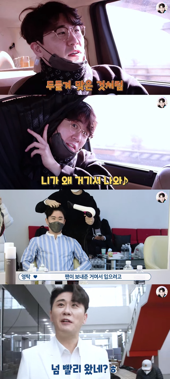 녹화장에 도착한 영탁은 여벌 셔츠까지 준비한 프로페셔널한 모습을 보였다. 해당 셔츠는 팬이 선물해줬던 것. 영탁은 "팬이 보내준 거여서 입으려고 챙겨왔는데 작다"라며 아쉬움을 감추지 못했다. 자연스럽게 드러난 영탁의 팬 사랑이 구독자들의 가슴을 뭉클하게 만들었다.