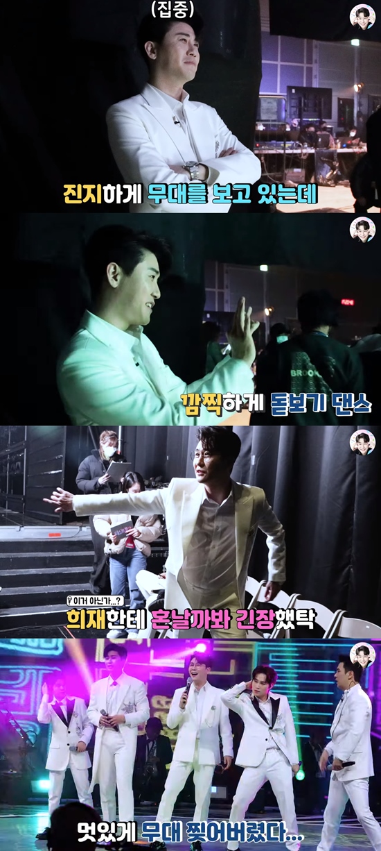 이어 영탁은 녹화 전 마지막 안무 체크에 임했다. 영탁은 김희재가 "영탁이 형 연습 안 했다. 그래놓고 아까 나한테 혼났다"라고 장난을 치자 "했어, 인마!"라고 투덜댔다.