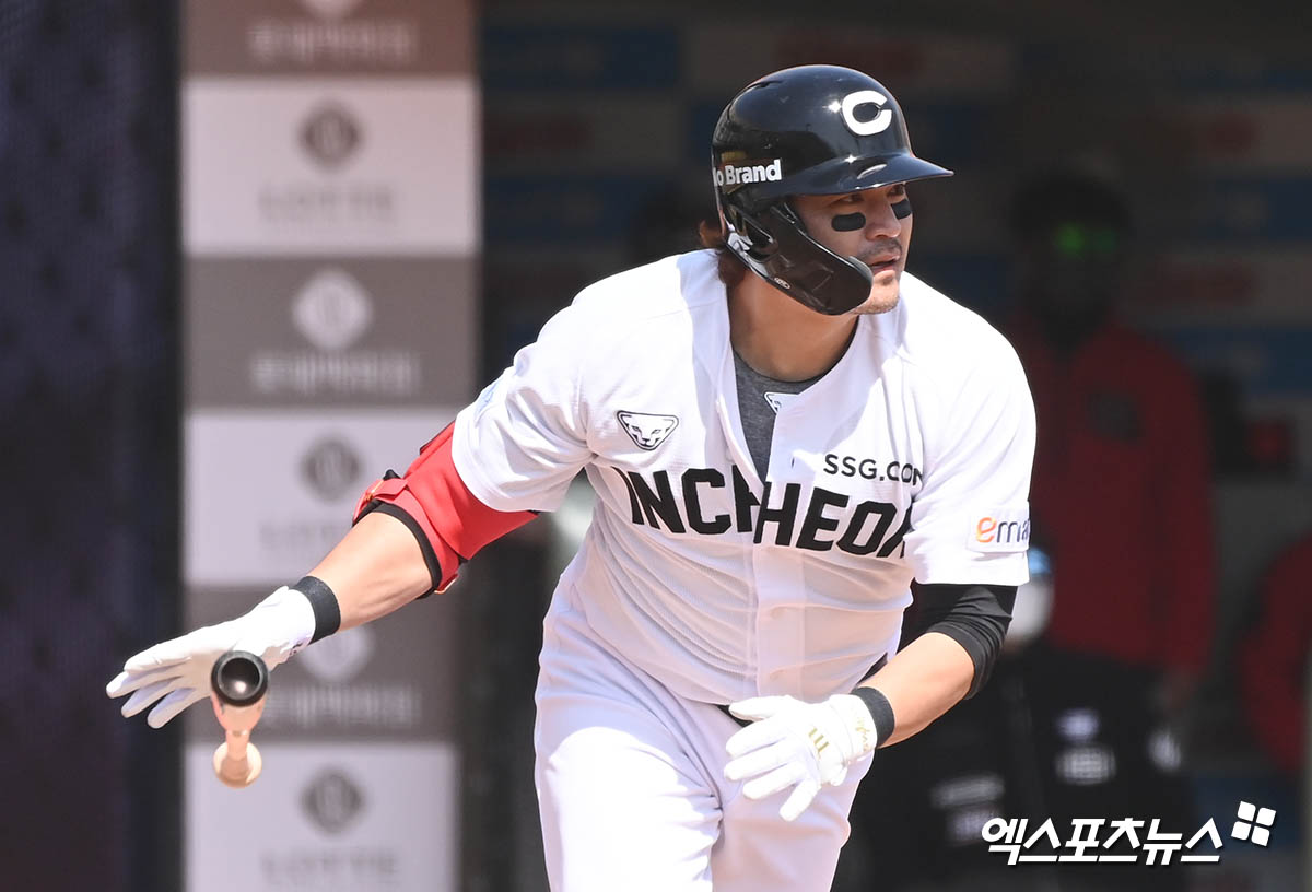[엑스포츠뉴스 부산, 윤다희 기자] 23일 오후 부산 동래구 사직야구장에서 열린 SSG 랜더스와 롯데 자이언츠의 시범경기, 3회초 2사 만루 SSG 추신수가 2타점 적시타를 날리고 있다.