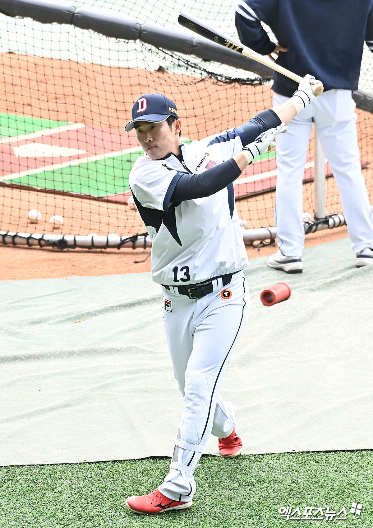 [엑스포츠뉴스 잠실, 윤다희 기자] 4일 오후 서울 송파구 잠실야구장에서 열리는 ‘2021 신한은행 SOL KBO리그’ KIA 타이거즈와 두산 베어스의 개막전 경기에 앞서 두산 허경민이 훈련에 임하고 있다.