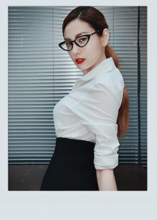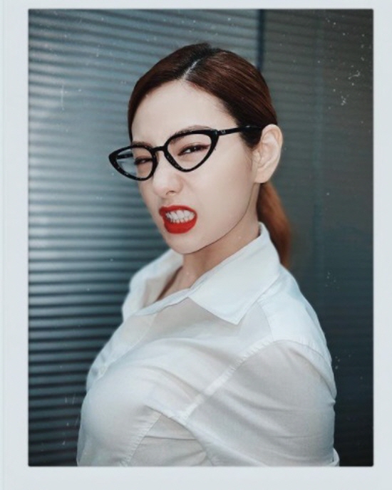 사진 속 나나는 오피스룩을 착장하고 뿔테 안경을 쓴 채 다양한 표정과 포즈를 취했다.