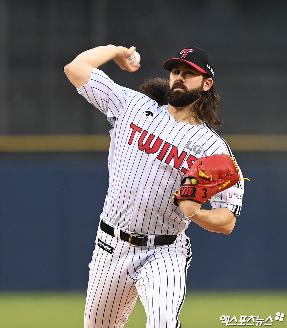 [엑스포츠뉴스 잠실, 박지영 기자] 22일 오후 서울 송파구 잠실야구장에서 열린 '2021 신한은행 SOL KBO리그' KIA 타이거즈와 LG 트윈스의 경기, 1회초 LG 선발투수 켈리가 역투하고 있다.