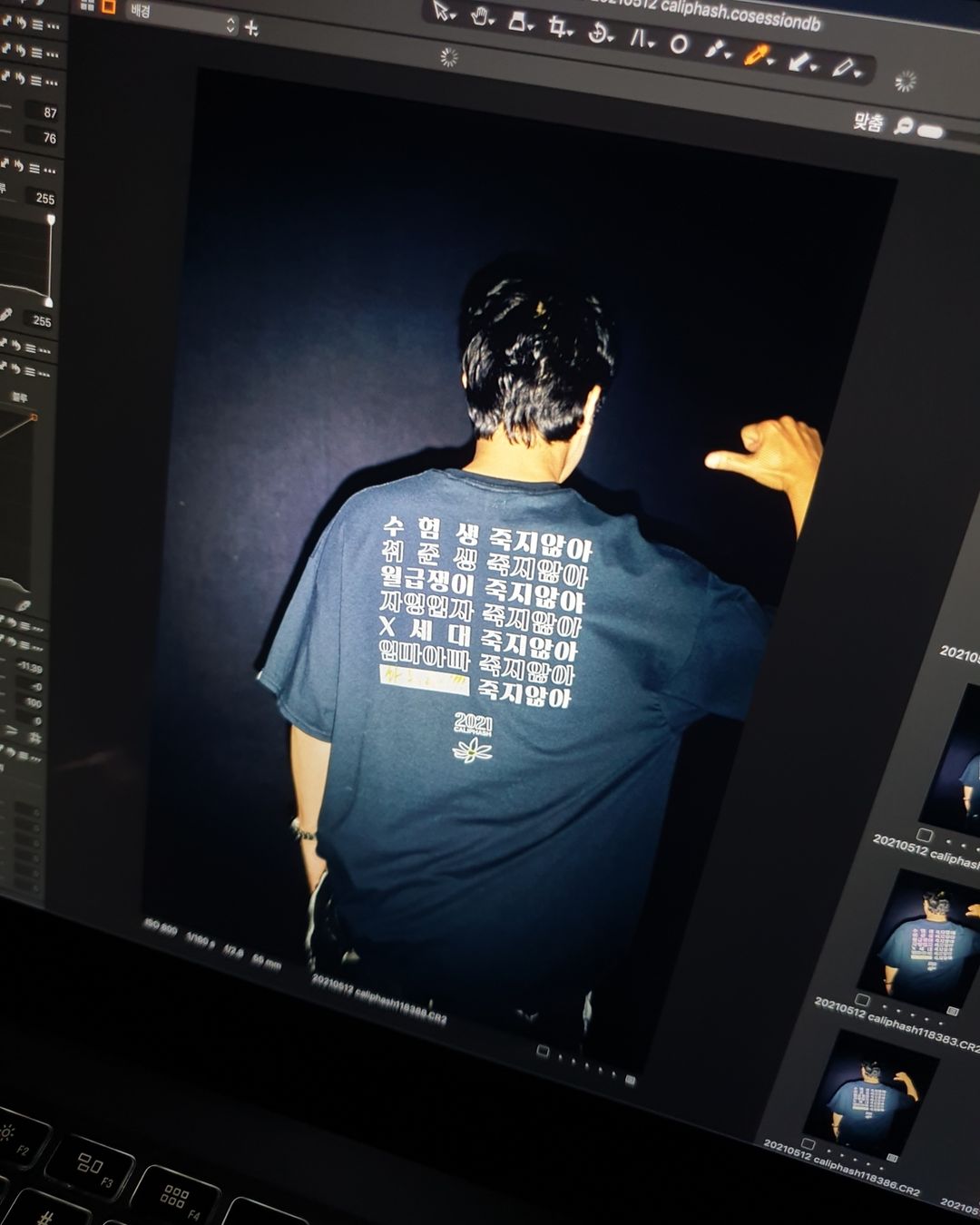 사진 속에는 카메라 앞에서 화보 촬영에 한창인 하하의 모습이 담겨 있다. 연예인 포스가 물씬 풍기는 하하의 비주얼이 시선을 사로잡는다. 남편을 향한 별의 애정 어린 응원도 미소를 자아낸다.