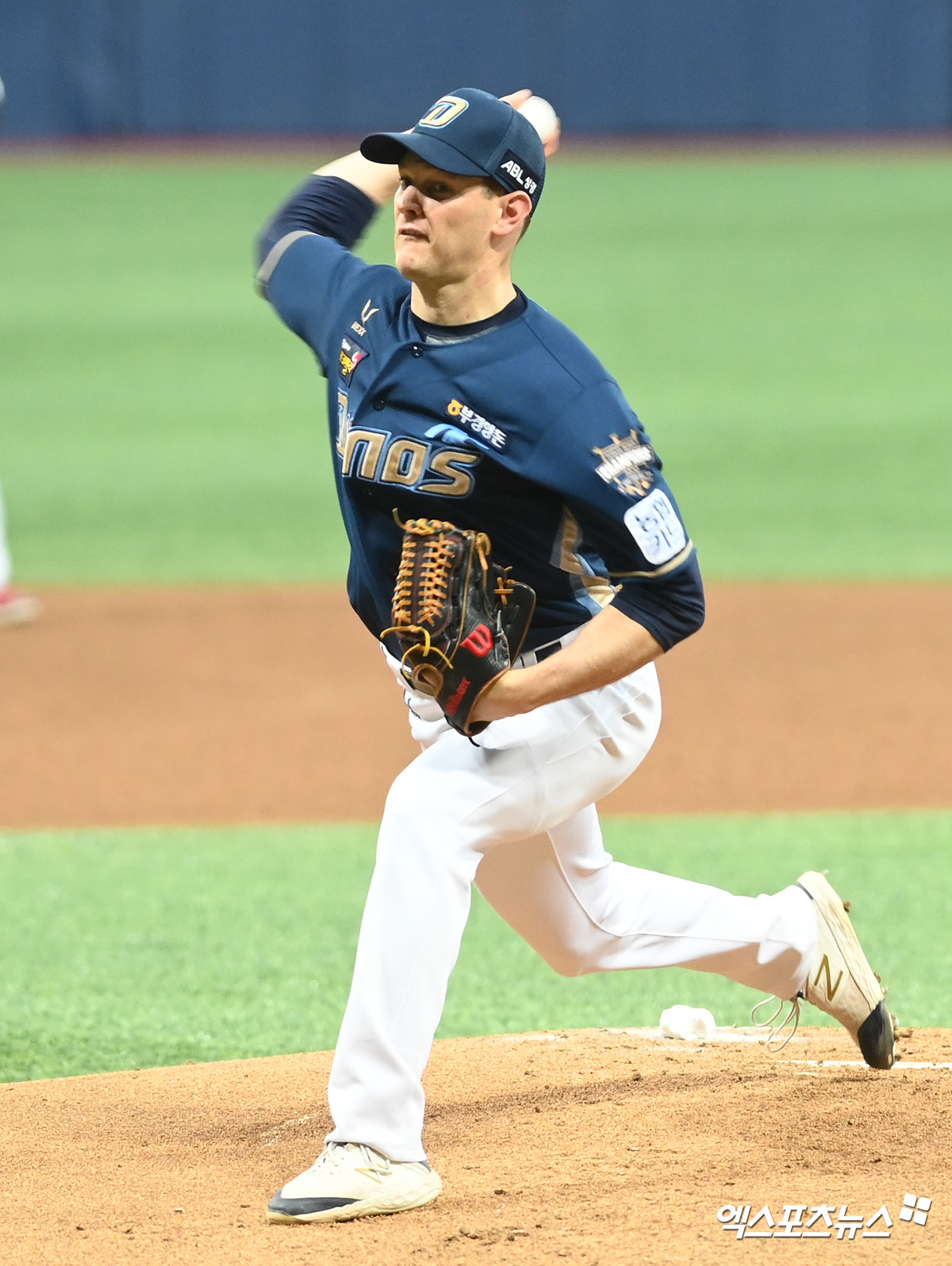 [엑스포츠뉴스 고척, 고아라 기자] 23일 오후 서울 구로구 고척스카이돔에서 열린 '2021 신한은행 SOL KBO리그' NC 다이노스와 키움 히어로즈의 경기, 1회말 NC 선발투수 루친스키가 공을 힘차게 던지고 있다.