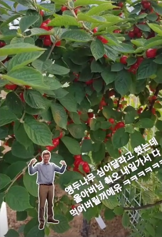 4일 코미디언 홍현희는 자신의 인스타그램 스토리에 "앵두나무 심어달라고 했는데 울 아버님 최고"라는 글과 함께 사진을 게재했다.
