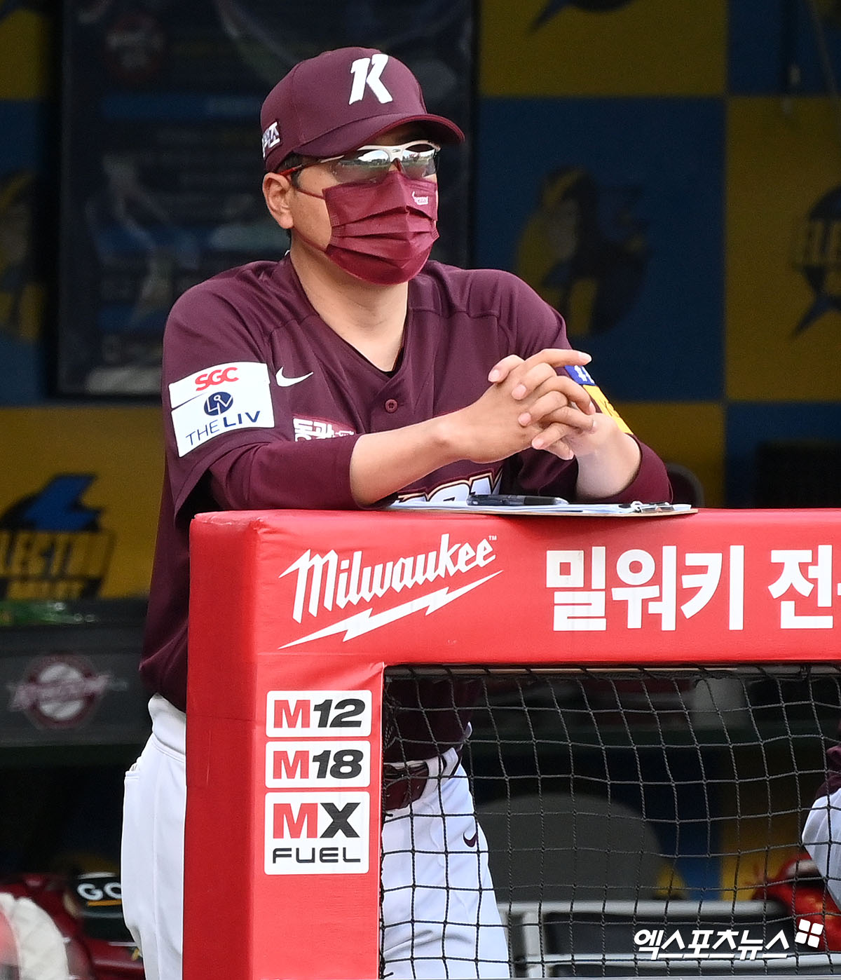 [엑스포츠뉴스 인천, 김한준 기자] 11일 오후 인천 SSG랜더스필드에서 열린 '2021 신한은행 SOL KBO리그' 키움 히어로즈와 SSG 랜더스의 경기, 키움 홍원기 감독이 경기를 지켜보고 있다.
