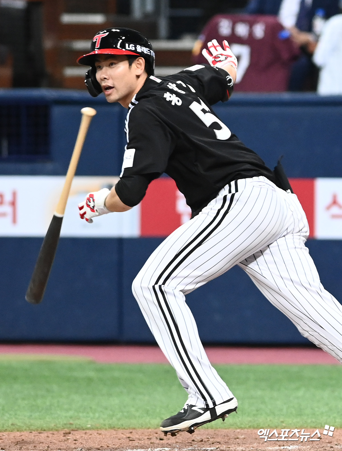 [엑스포츠뉴스 고척, 고아라 기자] 15일 오후 서울 구로구 고척스카이돔에서 열린 '2021 신한은행 SOL KBO리그' LG 트윈스와 키움 히어로즈의 경기, 9회초 2사 만루 LG 홍창기가 2타점 1루타를 날리고 있다.
