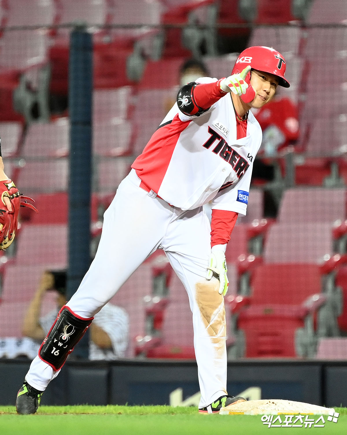 [엑스포츠뉴스 광주, 김한준 기자] 16일 오후 광주-기아 챔피언스필드에서 열린 '2021 신한은행 SOL KBO리그' SSG 랜더스와 KIA 타이거즈의 더블헤더 2차전 경기, 4회말 2사 1,2루 KIA 최원준이 1타점 적시타를 날린 후 기뻐하고 있다.