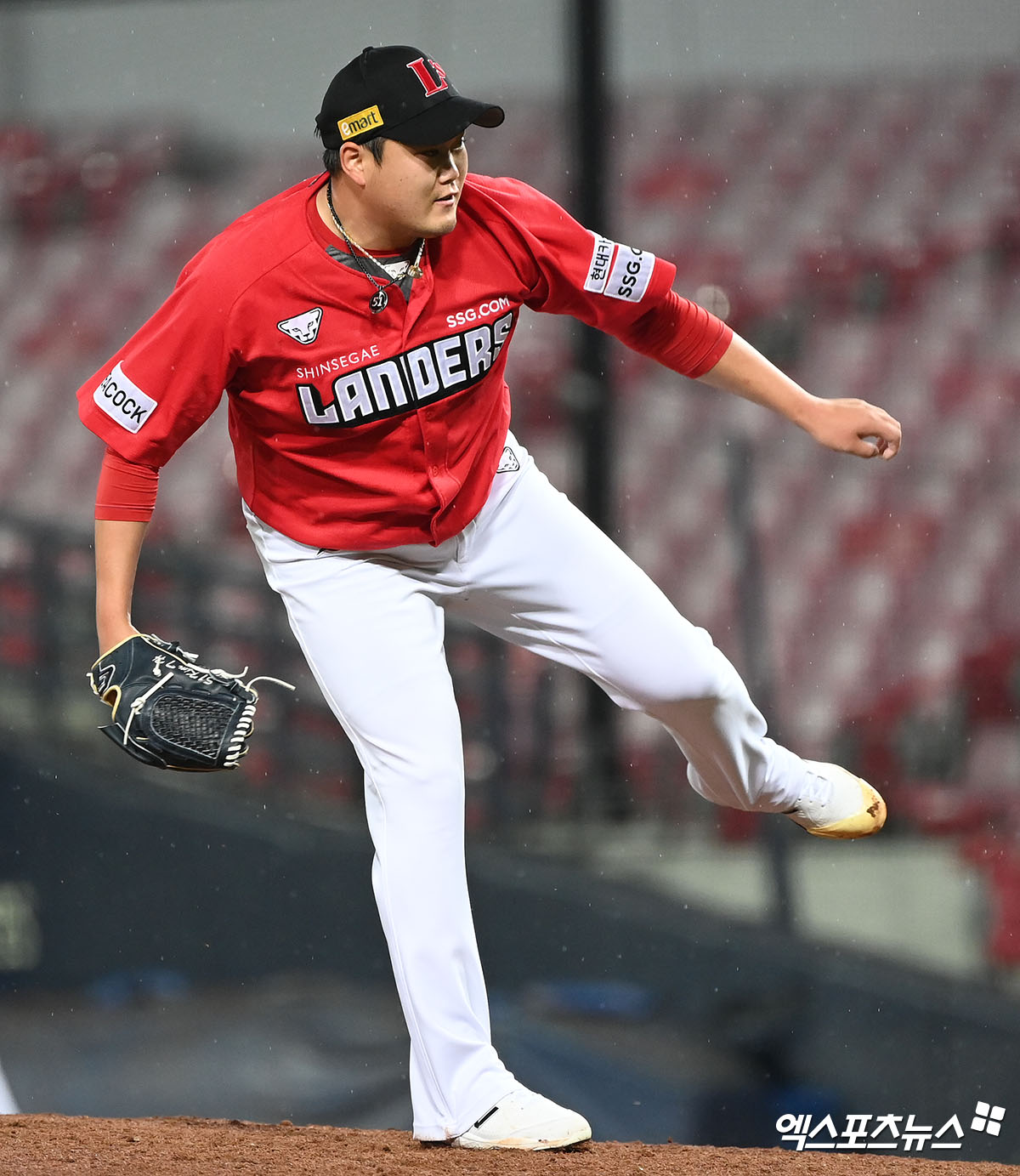 [엑스포츠뉴스 광주, 김한준 기자] 17일 오후 광주-기아 챔피언스필드에서 열린 '2021 신한은행 SOL KBO리그' SSG 랜더스와 KIA 타이거즈의 경기, 8회말 SSG 김태훈이 공을 힘차게 던지고 있다.