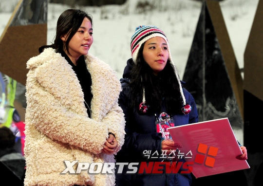 [엑스포츠뉴스 = 평창 권태완 기자] 12일 오후 강원도 평창군 알펜시아에서 열린 '2011 평장 FIS 스키정프 대륙컵 대회'에서 홍보대사 민효린이 1위 시상을 위해 대기하고 있다.