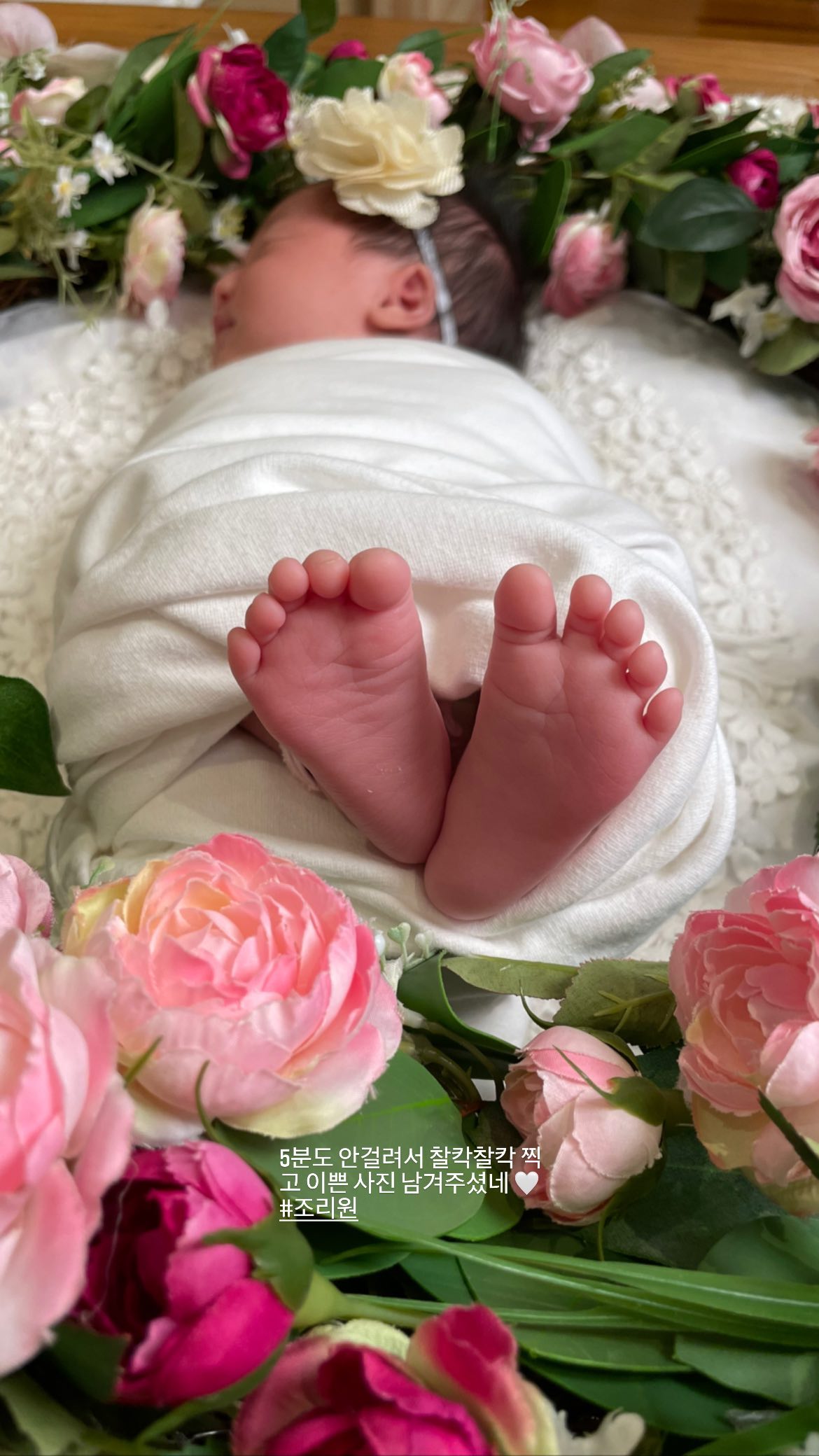 한지혜는 9일 자신의 인스타그램에 "신생아 촬영. 너무 사랑스럽다아~ 5분도 안 걸려서 찰칵찰칵 찍고 이쁜 사진 남겨주셨네 #조리원"이라는 글과 함께 사진을 게재했다.