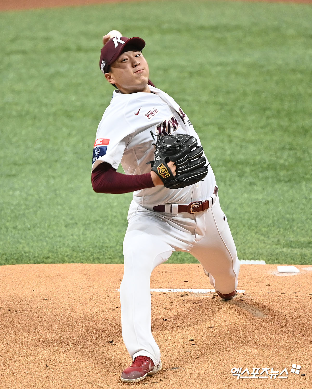 (엑스포츠뉴스 고척, 김한준 기자) 25일 오후 서울 구로구 고척스카이돔에서 열린 야구대표팀과 키움의 평가전 경기, 키움 선발투수 이승호가 공을 힘차게 던지고 있다.