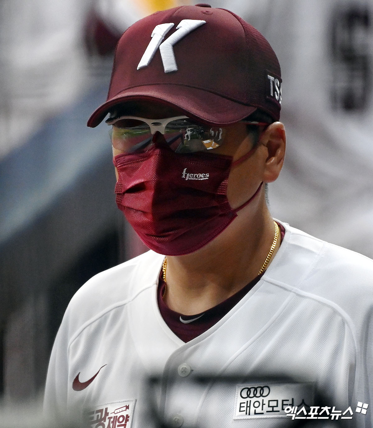 (엑스포츠뉴스 고척, 김한준 기자) 25일 오후 서울 구로구 고척스카이돔에서 열린 야구대표팀과 키움의 평가전 경기, 키움 홍원기 감독이 생각에 잠겨 있다.