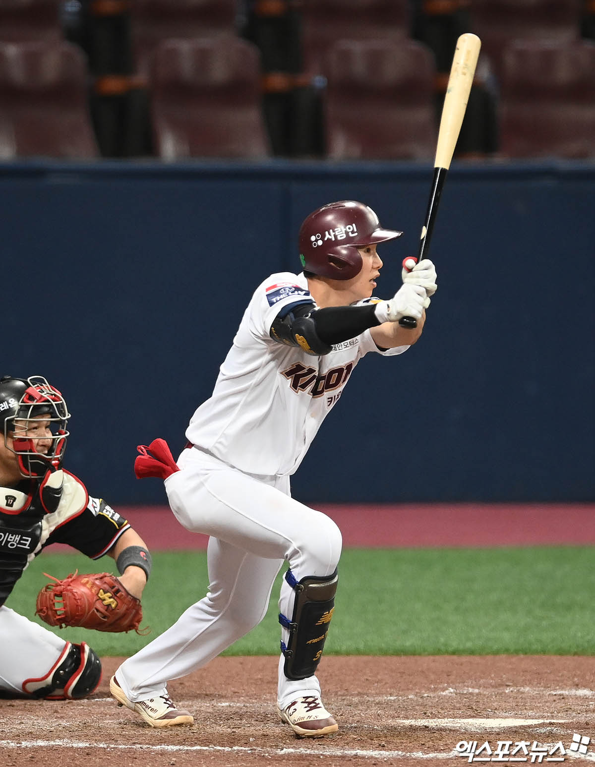 (엑스포츠뉴스 고척, 박지영 기자) 12일 오후 서울 구로구 고척스카이돔에서 열린 '2021 신한은행 SOL KBO리그' KT 위즈와 키움 히어로즈의 경기, 7회말 1사 키움 김혜성이 안타를 때려내고 있다.