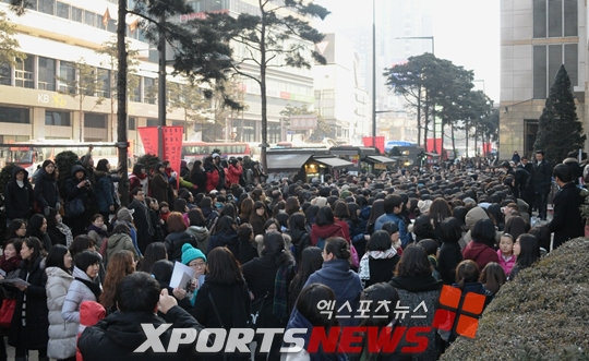 비공개로 진행된 사인회에서 팬들이 현빈을 보기 위해 백화점 주변에 몰려들었다.