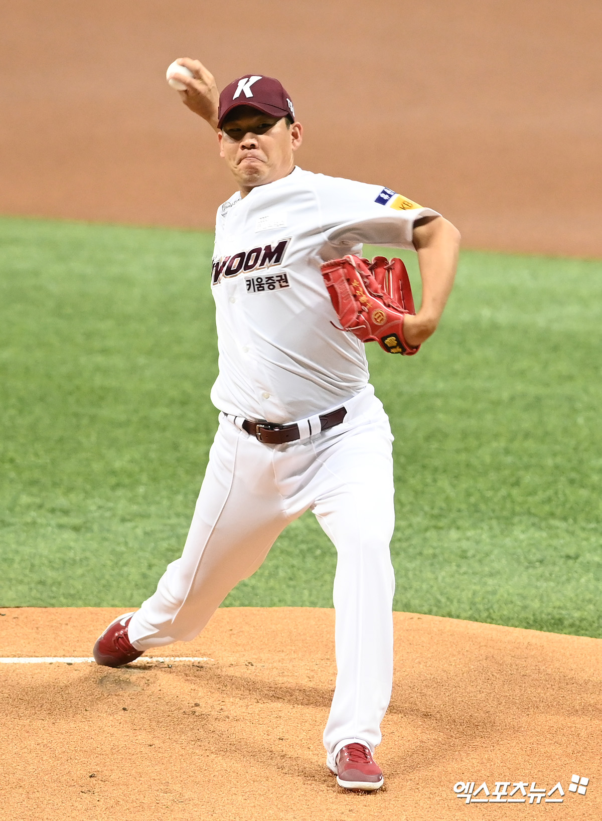 (엑스포츠뉴스 고척, 고아라 기자) 14일 오후 서울 구로구 고척스카이돔에서 열린 '2021 신한은행 SOL KBO리그' 두산 베어스와 키움 히어로즈의 경기, 키움 선발투수 정찬헌이 공을 힘차게 던지고 있다.