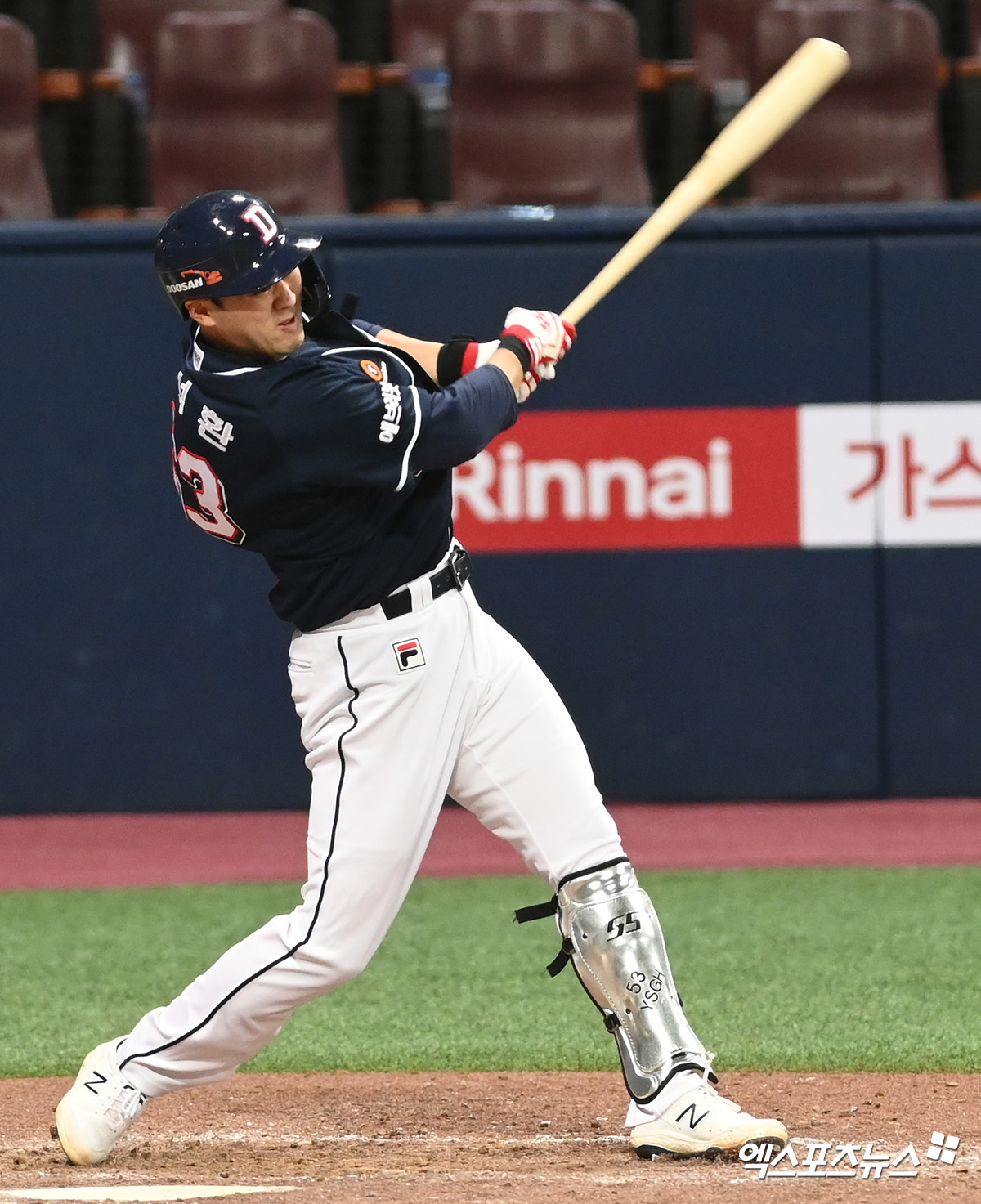(엑스포츠뉴스 고척, 고아라 기자) 14일 오후 서울 구로구 고척스카이돔에서 열린 '2021 신한은행 SOL KBO리그' 두산 베어스와 키움 히어로즈의 경기, 8회초 두산 양석환이 2루타를 날리고 있다.