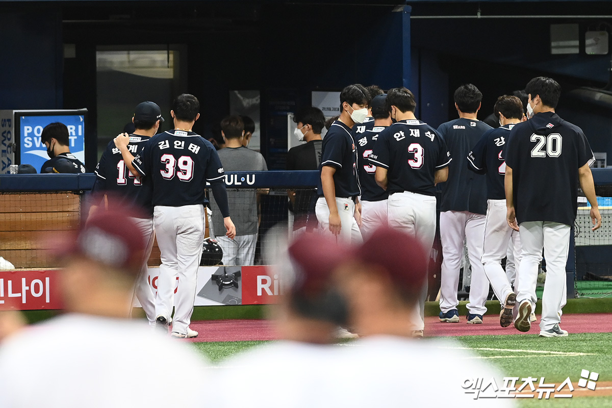 이날 경기에서 패한 두산 선수들이 더그아웃으로 향하고 있다.