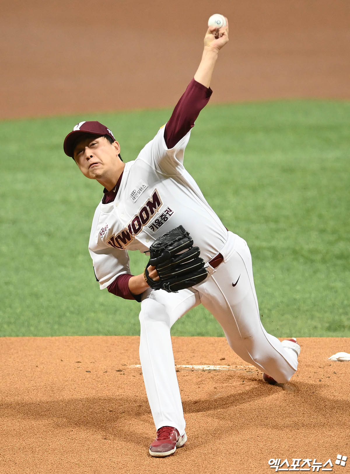(엑스포츠뉴스 고척, 박지영 기자) 25일 오후 서울 구로구 고척스카이돔에서 열린 '2021 신한은행 SOL KBO리그' 한화 이글스와 키움 히어로즈의 경기, 1회초 키움 선발투수 이승호가 역투하고 있다.