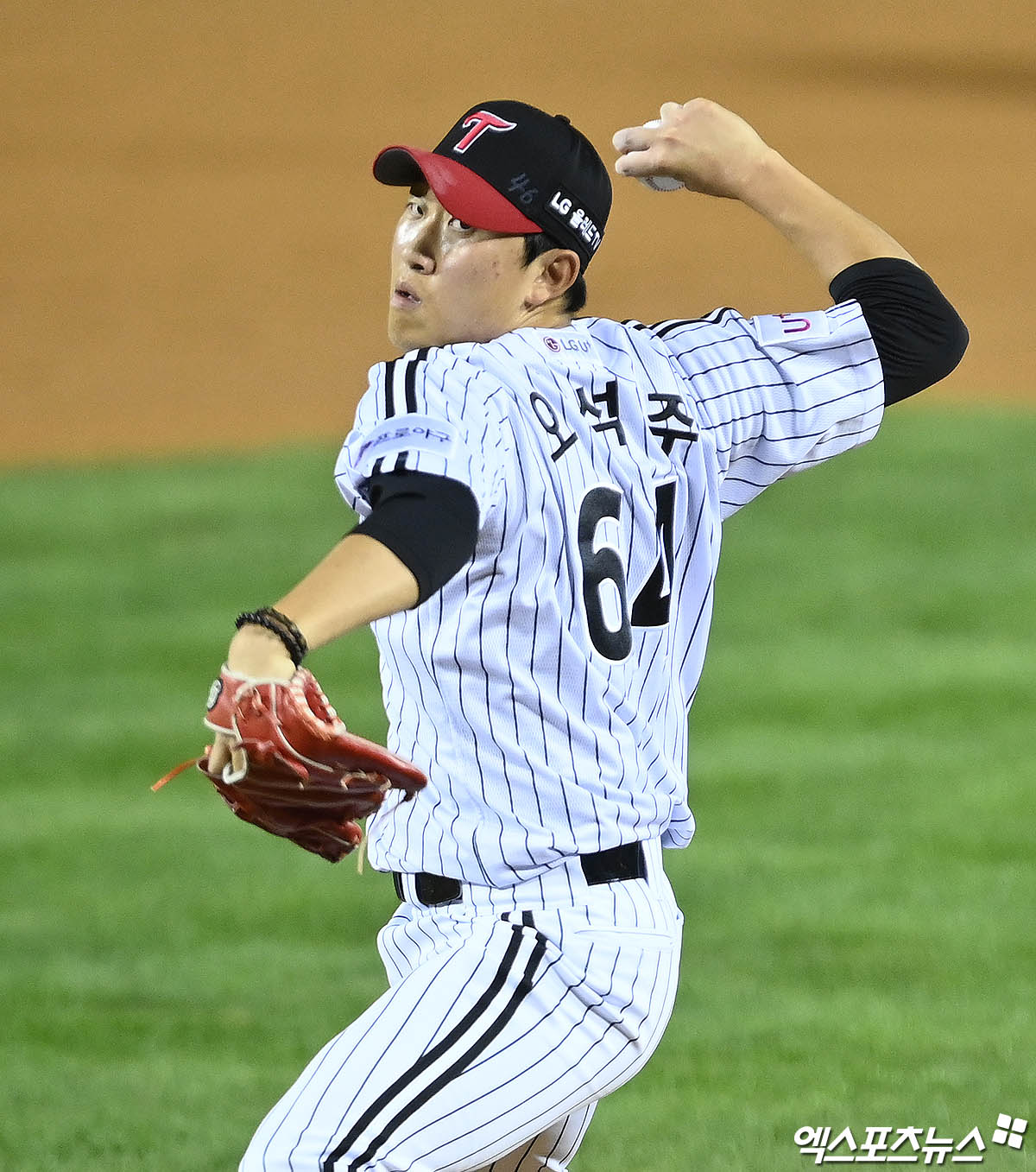 (엑스포츠뉴스 잠실, 박지영 기자) 2일 오후 서울 송파구 잠실야구장에서 열린 '2021 신한은행 SOL KBO리그' NC 다이노스와 LG 트윈스의 경기, 9회초 LG 오석주가 역투하고 있다.
