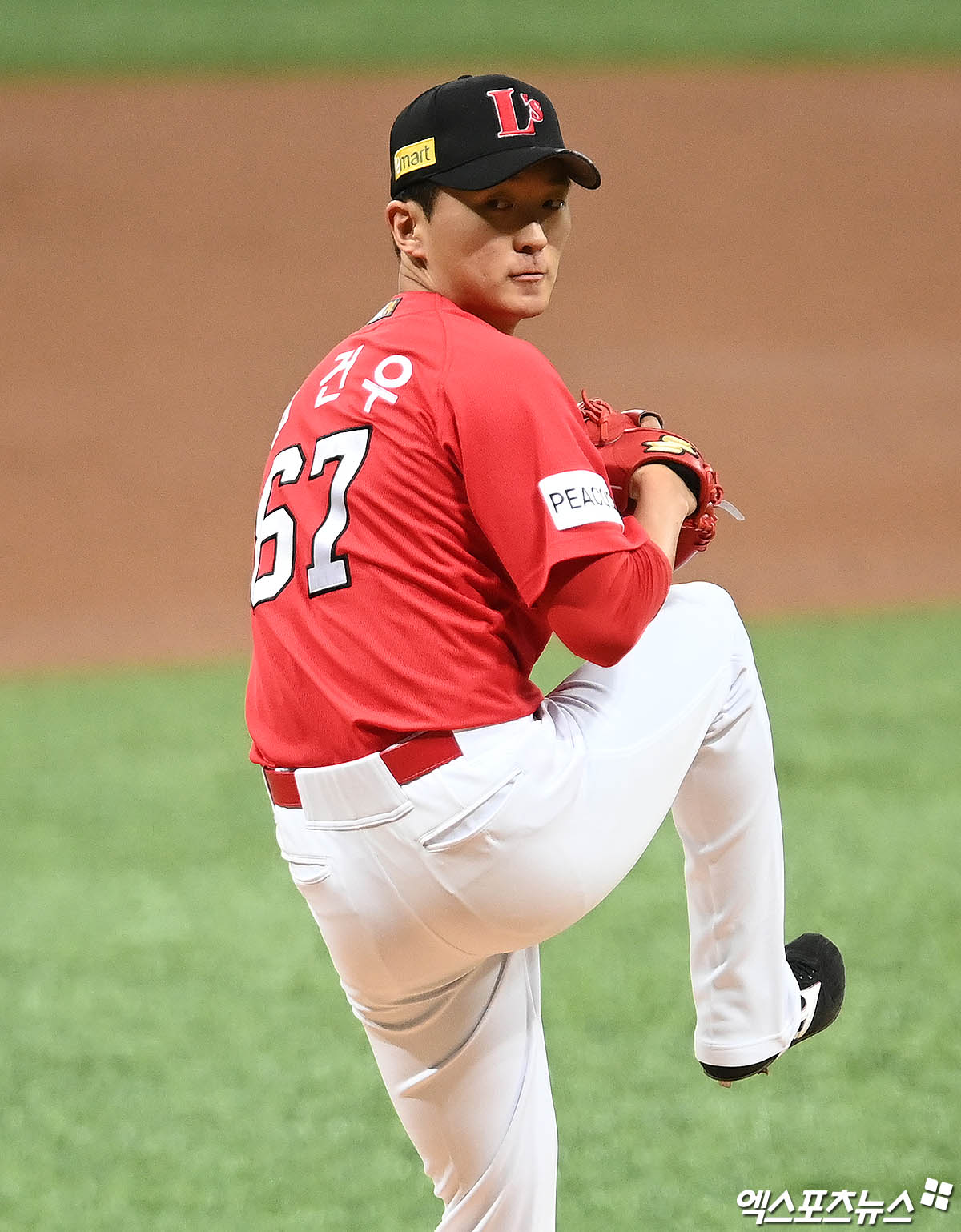 (엑스포츠뉴스 고척, 박지영 기자) 5일 오후 서울 구로구 고척스카이돔에서 열린 '2021 신한은행 SOL KBO리그' SSG 랜더스와 키움 히어로즈의 경기, 1회말 SSG 선발투수 김건우가 역투하고 있다.