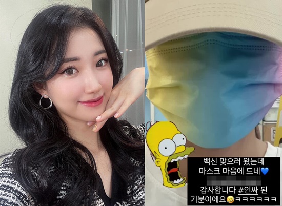 배수진은 지난 8일 자신의 인스타그램 스토리를 통해 "백신 맞으러 왔는데 마스크 마음에 드네 감사합니다 인싸 된 기분이에요"라는 글과 함께 한 장의 사진을 게재했다.
