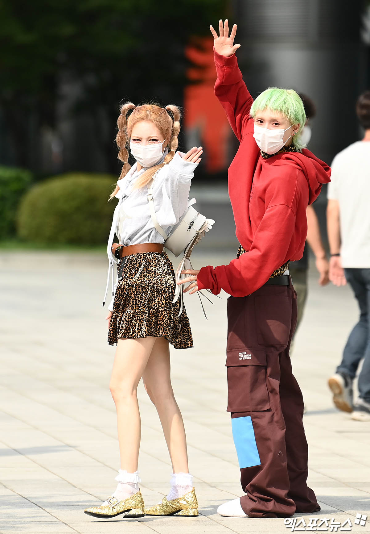 현아-던 '사랑 돋는 출근길 인사'[엑's HD포토]