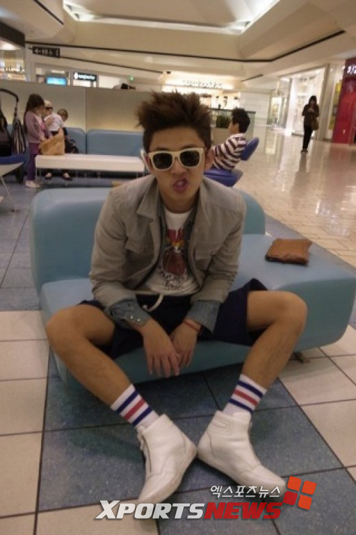 그는 흰색 선글라스를 쓴 채 원숭이를 연상시키는 장난스러운 표정을 짓고 있다. 특히 네티즌들의 눈길을 끈 것은 가느다란 그의 다리. 반바지 아래로 드러난 여자 못지않은 얇은 다리를 자랑했다.